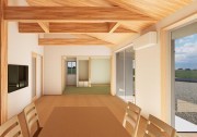 天井には杉板はもちろん、化粧梁も採用。