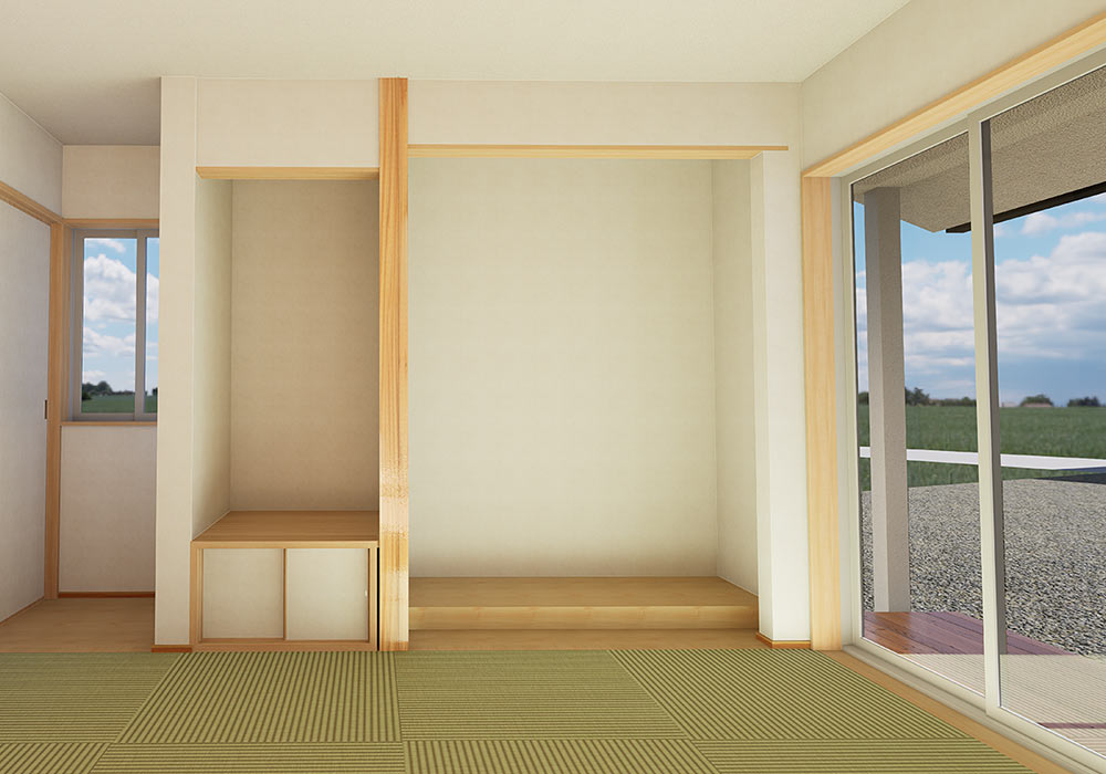 和室はすっきりとしたデザインの琉球畳を採用し、和の雰囲気を残しつつもナチュラルな印象に仕上げました。