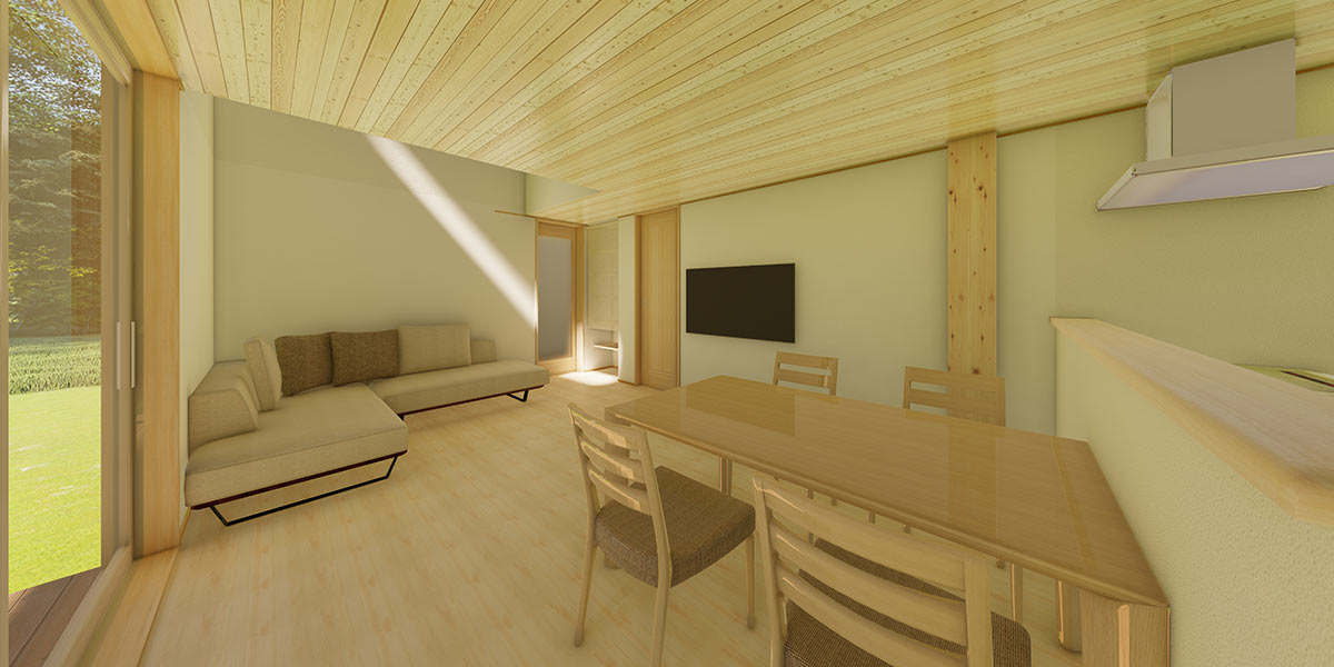 - 天井に杉板を計画した、温もりのあるLDK