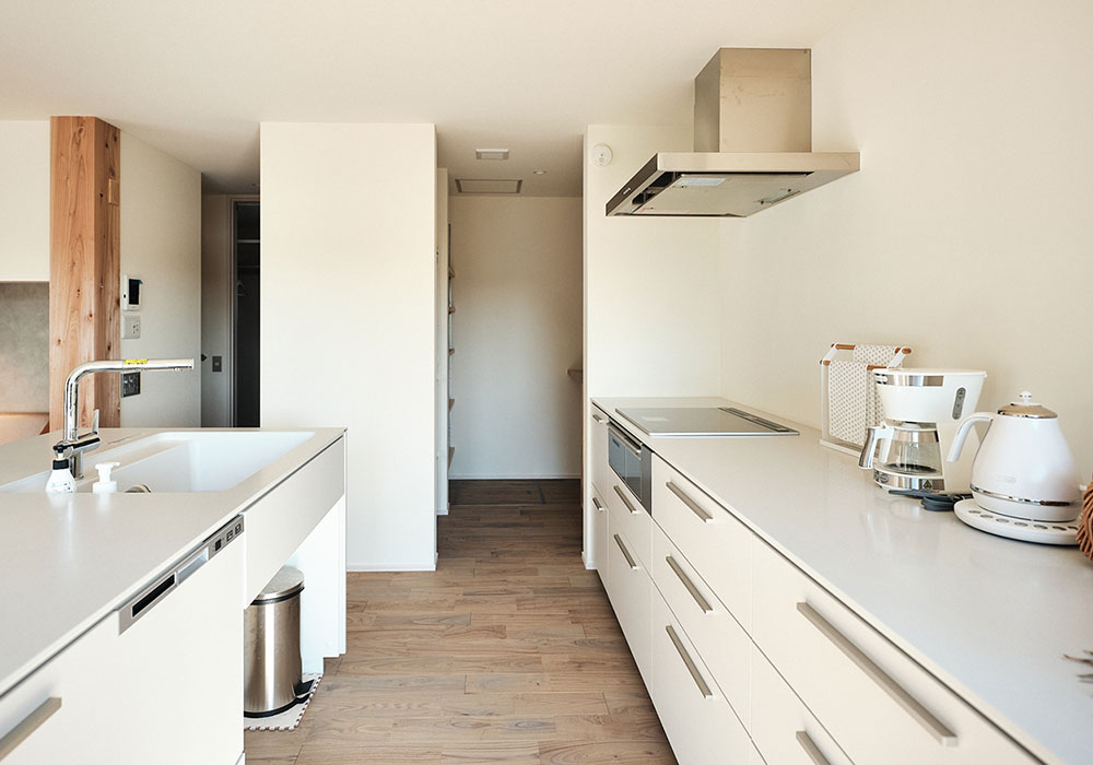 - 床材はクリで内装はホワイトを中心に採用したこだわりのインテリア