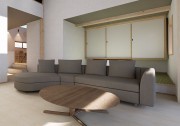 ダイニング横の段下がり書斎は、少しこもって作業に集中したいときにぴったりの“自分時間”スペース。