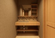 キッチン~ファミリークローゼット~ランドリールーム~脱衣室がぐるりとつながる、行き止まりのない回遊動線。