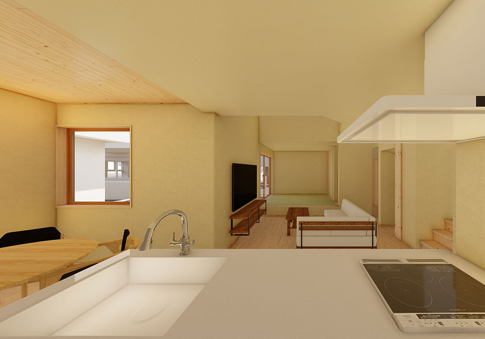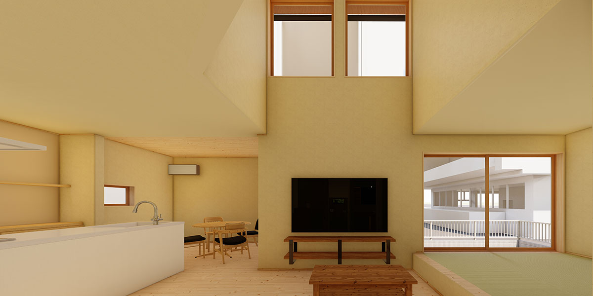 家族が集まるLDKには、開放的な吹き抜けを設けました。