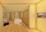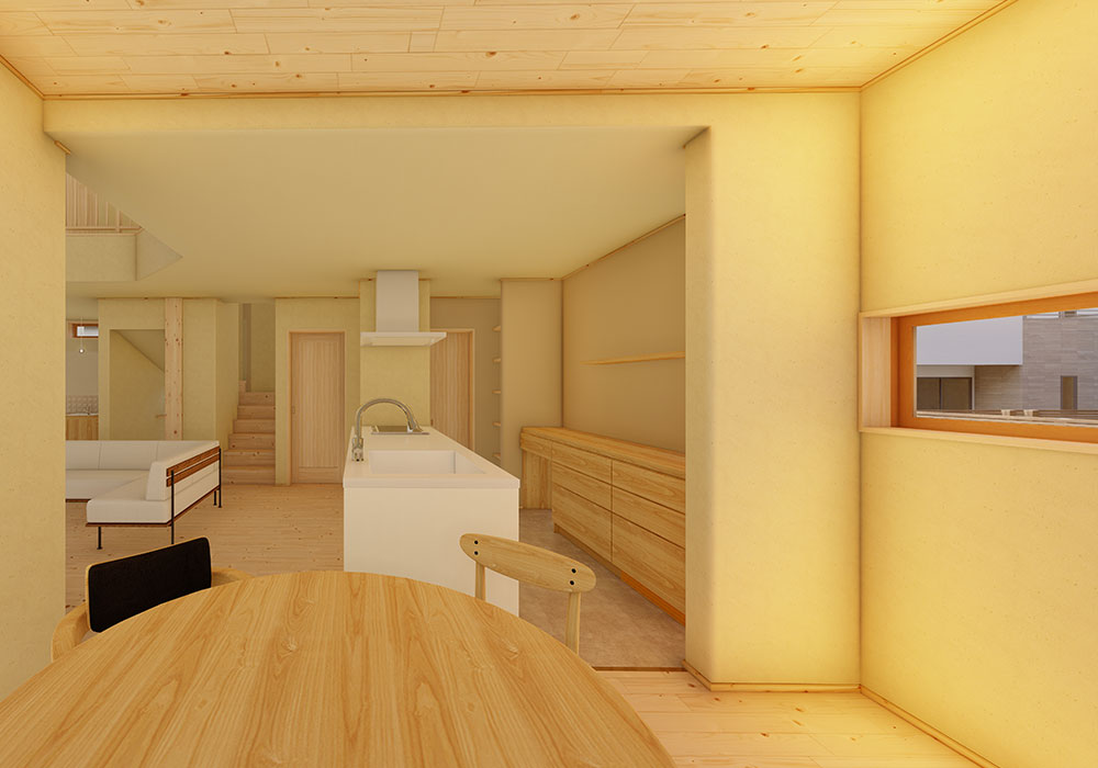 ダイニングには節の少ない杉材を採用し、木の温もりを感じられます。