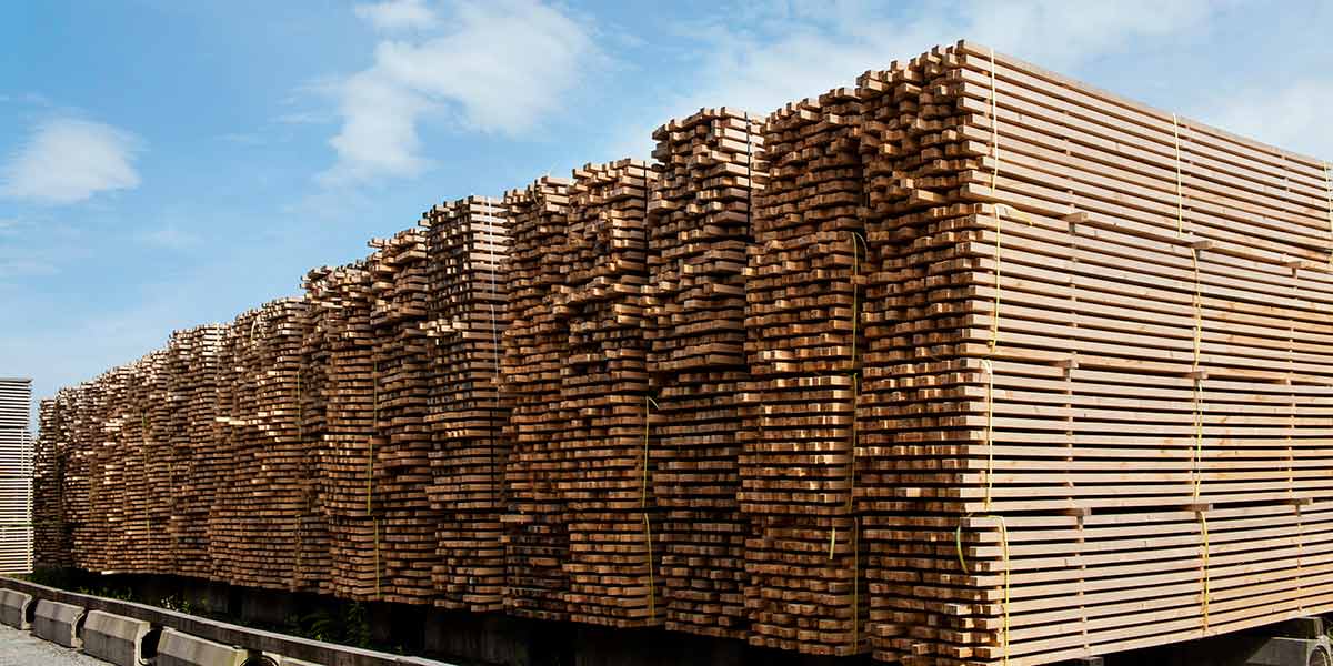 木材のストックヤードでは天然乾燥のこだわり、木の香りあふれる工場では、最新鋭の機械を使った木材加工の様子もご覧いただけます。