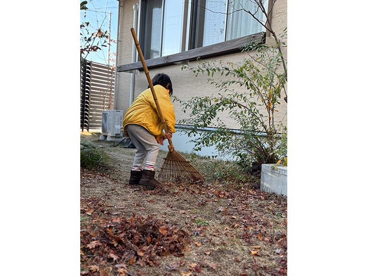季節によっては落ち葉拾いが必要になりますが、それも暮らしの一部。娘と一緒に楽しみながら、自然と向き合う時間を大切にしています。