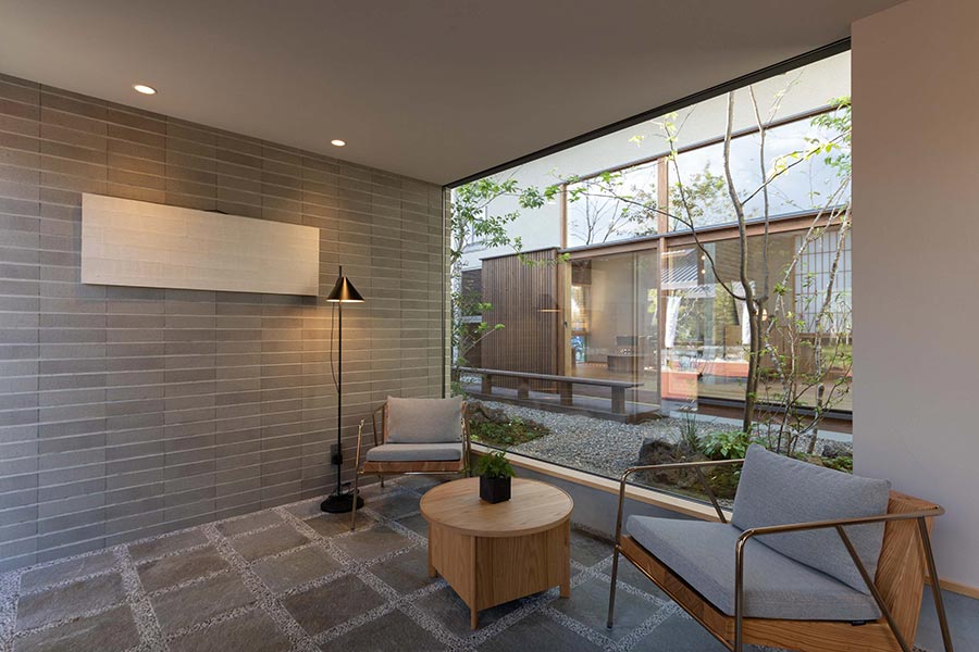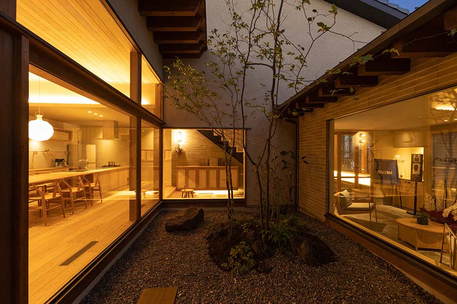 ウチとソトとのつながりを感じる空間。敷地の真ん中に庭を配置することで、緑を身近に感じることができます。