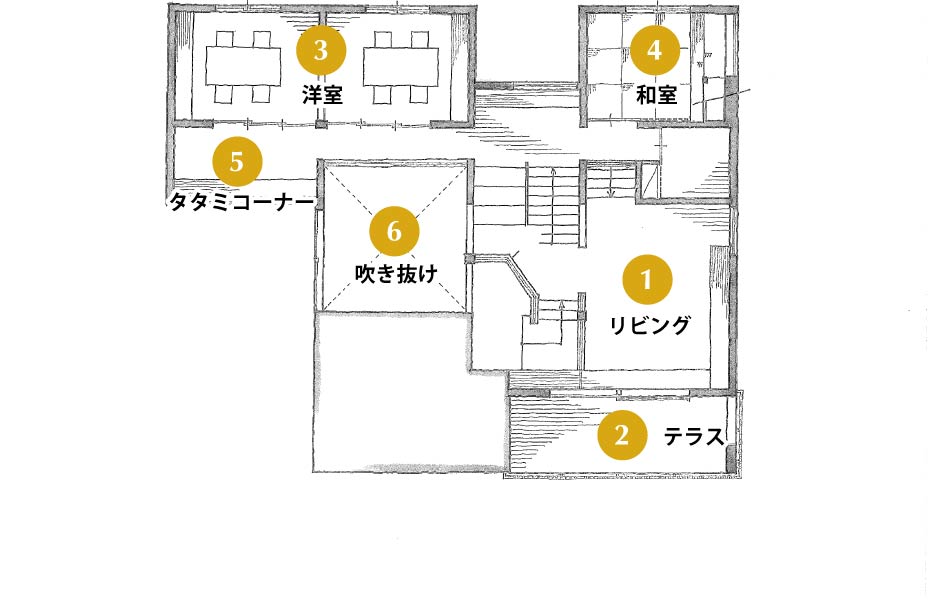家族の気配を感じながら、お気に入りの居場所で、思い思いの時間を楽しむことができる住まいです。