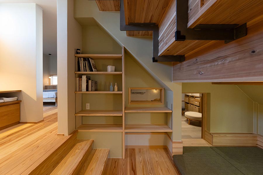 スキップフロアの下は、収納としても趣味部屋としても活用できる納戸