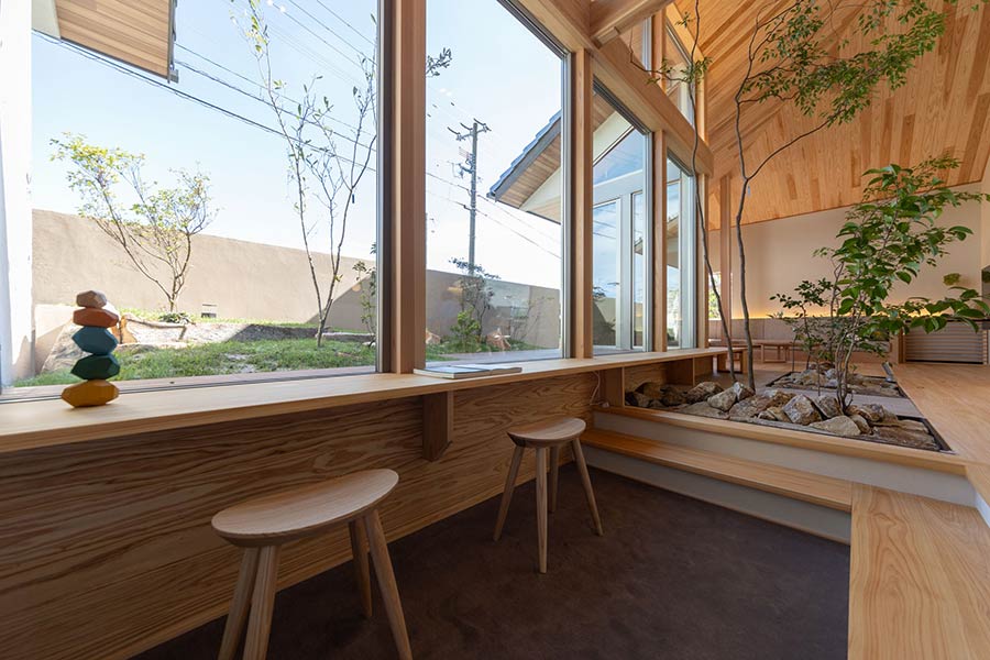 植栽の緑に癒されるだけでなく、土のにおいを感じたり、石に触れることができたりと、室内にいながら自然との触れ合いを楽しめます。