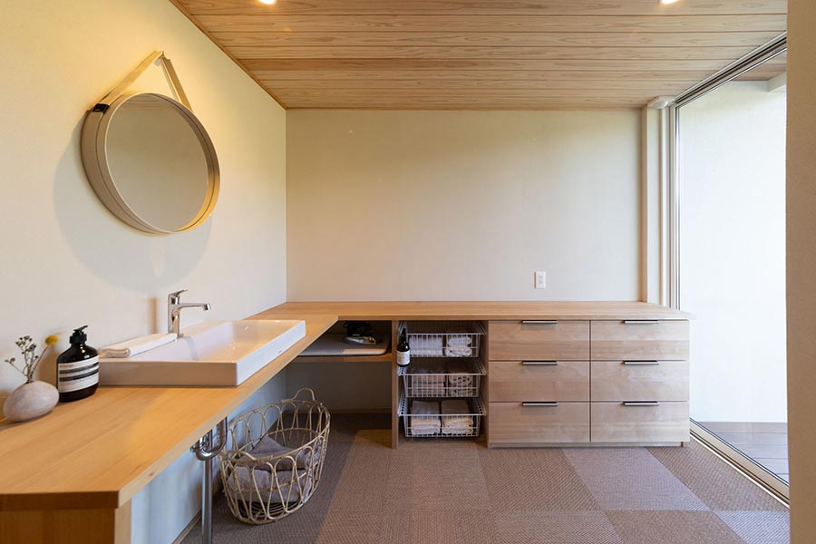⼋代産のい草を使った畳コーナーは、サブリビングや⼦どもの遊び場として活躍します。