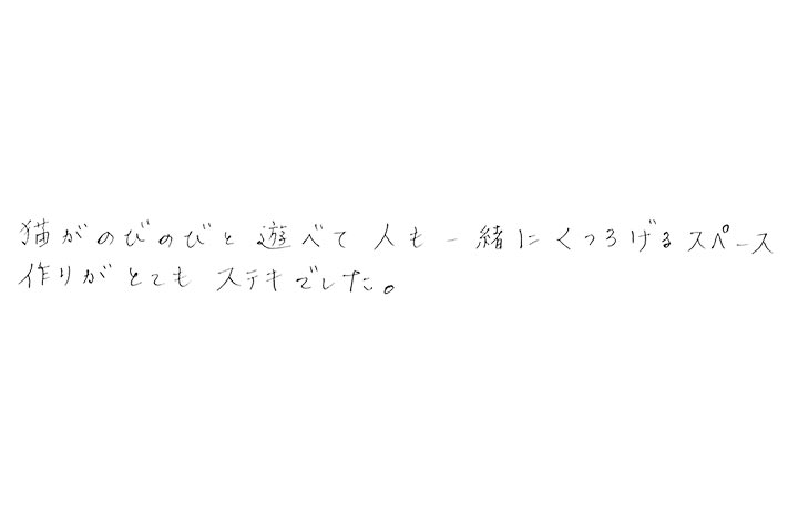 【にゃんだふるほーむにご来場いただいたお客様のご感想】こういうところで飼われると、ネコは幸せだなと思いました。