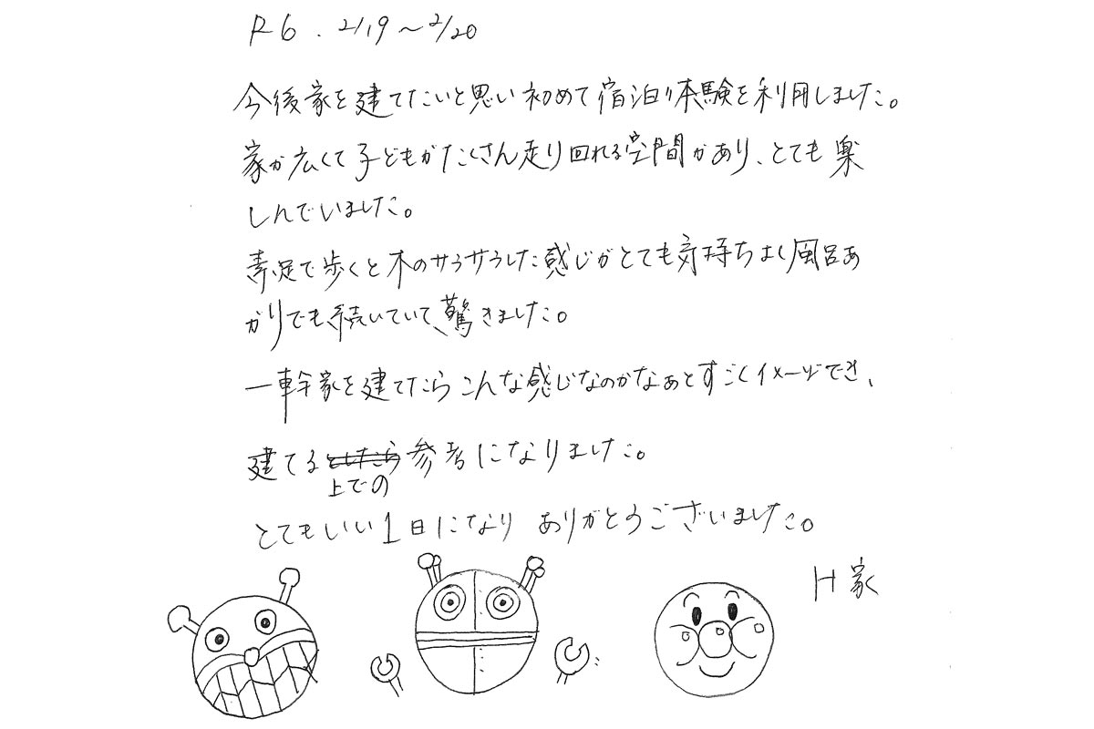 【宿泊体験にご参加いただいたH様のご感想】「一軒家を建てたらこんな感じなのかなぁ」とイメージできました!