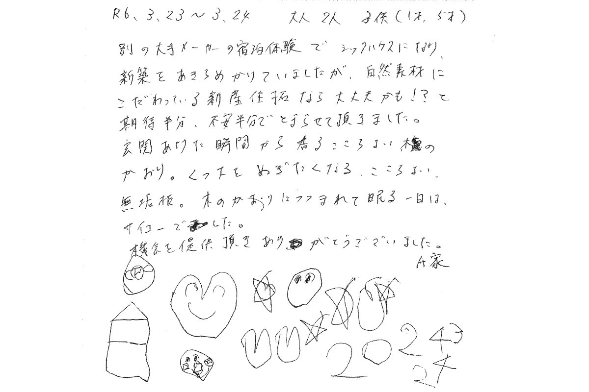 【宿泊体験にご参加いただいたA様のご感想】木の香りに包まれて眠る1日は、サイコーでした。