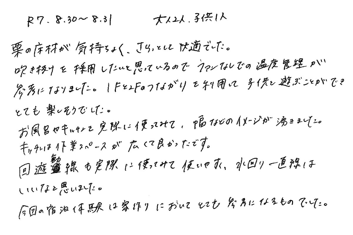 今回の宿泊体験は、家づくりにおいてとても参考になるものでした。