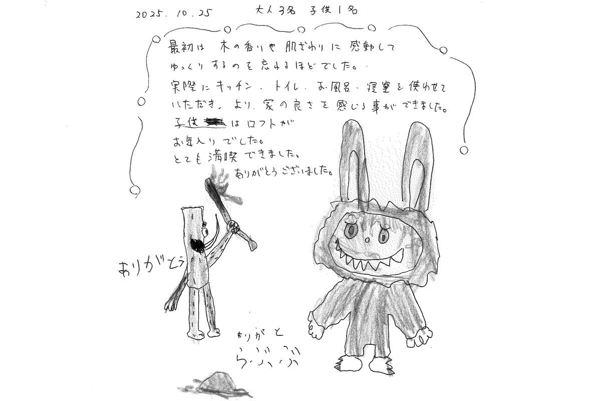 【宿泊体験にご参加いただいたS様のご感想】木の香りや肌ざわりに感動して、ゆっくりするのを忘れるほどでした。
