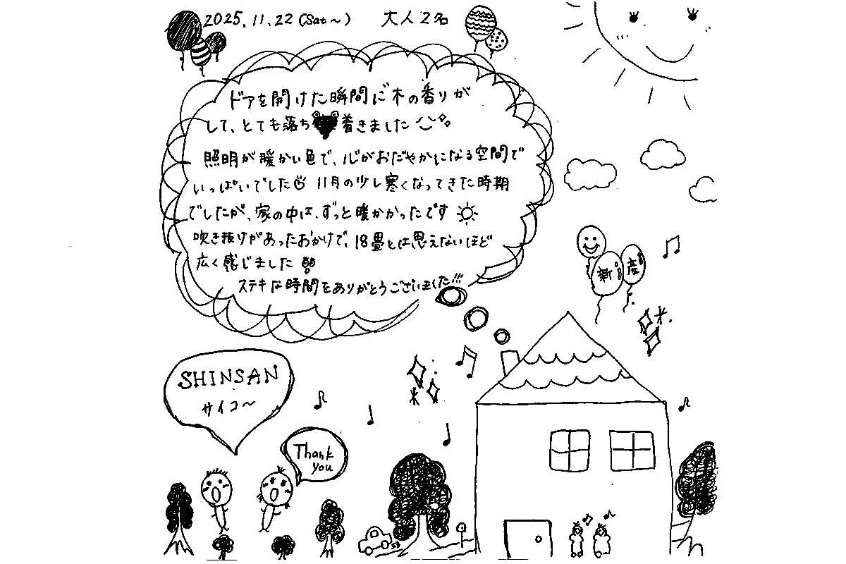 ドアを開けた瞬間に“木の香り”がして、とても落ち着きました(*^^*)
