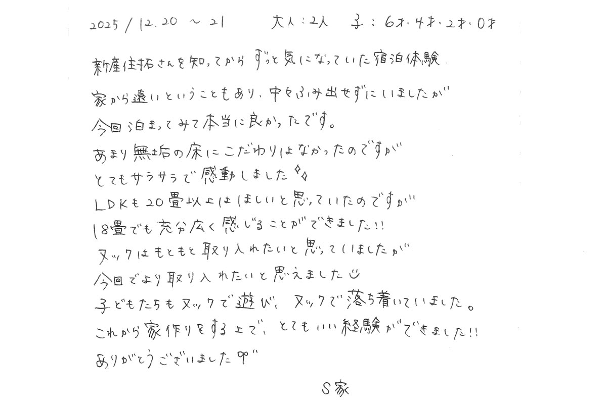 【宿泊体験にご参加いただいたS様のご感想】あまり無垢の床にこだわりはなかったのですが、とてもサラサラで感動しました!
