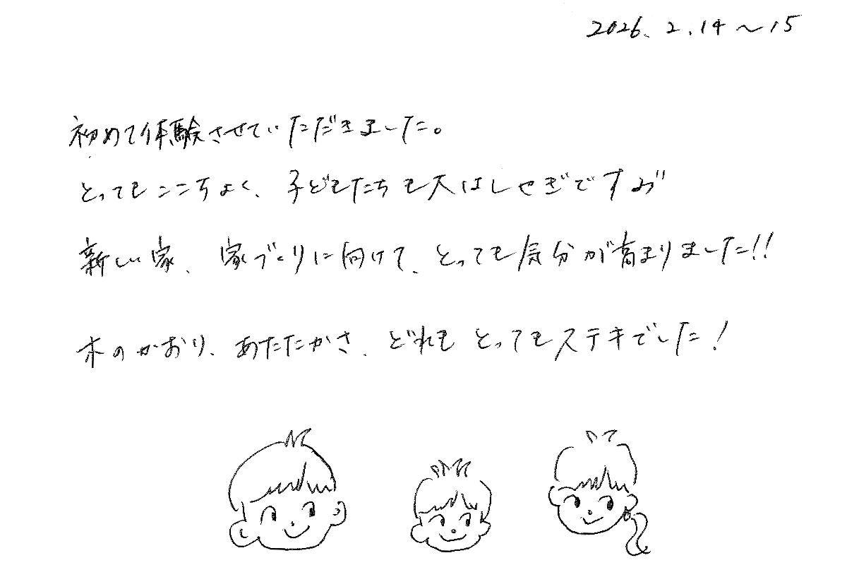 【宿泊体験にご参加いただいたT様のご感想】新しい家、家づくりに向けて、とっても気分が高まりました!!