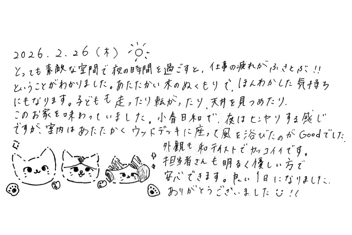 【宿泊体験にご参加いただいたM様のご感想】とっても素顔な空間で夜の時間を過ごすと、“仕事の疲れが吹き飛ぶ!!”ということがわかりました。