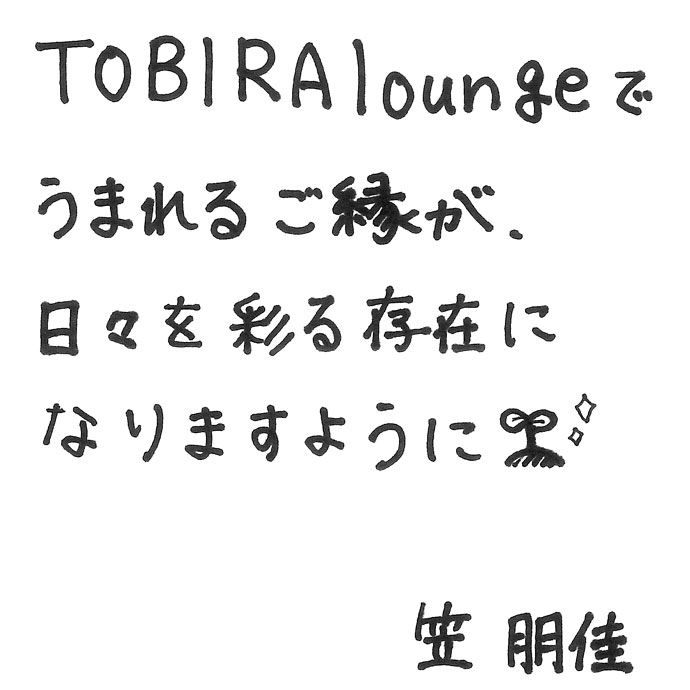 皆様とTOBIRA loungeでお会いできることを楽しみにしています。