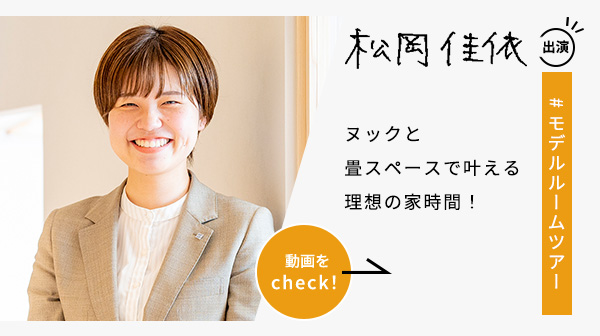 皆様、こんにちは!KAB浜線展示場の松岡です。 なんと、今年の春で入社4年目を迎えました!時の流れの早さに驚きを隠せません…! 永遠の若手でいたい気持ちをグッと堪え、フレッシュな可愛い後輩たちにそろそろ席を譲ります(笑)でも!「初心忘るべからず」の精神で、4年目も元気いっぱい、お客様の住まいづくりを全力でサポートします! さて、今回のブログも、KAB展示場の「推しポイント」を熱く語りたいと思います! 本日ご紹介するのは、日々の家事をグッと楽にする「キッチン・水まわり動線」です! 【推しポイント1:キッチン空間】 まずはこちら! この重厚感、伝わっていますでしょうか…? こちらのキッチンは、LIXILさんの「リシェルSI」という商品です!天板がセラミックになっているため、熱や汚れにめっぽう強く、熱々のフライパンをそのまま置いてもへっちゃらなんです! デザイン性・耐久性・メンテナンス性、どれを取っても優秀な、まさにキッチンの優等生!…と、商品の良さをついつい語ってしまいましたが(笑)、「キッチンそのもの」はもちろん、その「空間」がとっても素敵です! そんな空間をより一層引き立てている要素を、2つご紹介します。 〇タモ材の造作家具 キッチンの前側・後ろ側、どちらにも「タモ」という無垢材で造り付けの収納を作っています。木の家にピッタリな、温かみのある収納は、見せる収納として、お気に入りの食器や雑貨を飾るのも素敵ですね! 〇つながりが最高!アウトドアダイニング キッチンの左側を見ると…なんと!屋根がかかった広いお庭が広がっています! 気候の良い日には、お外で朝ごはんを食べてみたり、コーヒーを片手に読書をしてみたり…外でもない、中でもない、この絶妙な空間が最高なんです! さらに、つながり感を出すために、お庭のタイルをそのままキッチンまで繋げているのもポイントです! 【推しポイント2:家事効率UP!一直線の水まわり動線】 続いては、家事の効率が格段にUPする「水まわり動線」をご紹介します! KAB総合住宅展示場の水まわり動線の一番のポイントは、お風呂からWIC(ウォークインクローゼット)まで、一直線で行き来ができること! 〇脱衣室にも、タモ材の温もりをプラス 脱衣室にも、キッチンと同じくタモ材の造作収納を作りました。収納を開けると…なんとアイロン台まで…!(こんな隠し技的なこともできちゃうんです!ご希望の方は松岡までお気軽にお声掛けください!笑) 最近は、脱衣室に物干しポールを付けて、ランドリールームと兼用にされる方がとても多いです!無垢床なので、部屋干しでも乾くスピードが速いのも、うれしいポイント! 〇朝の準備が楽しくなる、おしゃれ洗面台 造作洗面台も、脱衣室との統一感を出すためにタモ材で作成しています。ボウルのグレーの色味と、タモ材の優しい風合いが絶妙にマッチしていて、とってもおしゃれです! さらに、ミラーの上から入る光で、自然光のような明るさでお化粧ができるのも、うれしいポイント。(こんな洗面台で準備できたら、お出かけがもっと楽しくなりそう!と、私も夢を膨らませています…!) 〇WICで、洗濯物をスムーズに収納! 動線の一番最後には、2.5帖のWIC(ウォークインクローゼット)が!脱衣室で部屋干しをした洗濯物を、そのままWICに掛けることができるので、とっても便利です!(洗濯物を畳む手間が省けるって、本当に助かりますよね!) さらに、WICの一角には可動棚まで!この板の1枚1枚も、本物の杉板を使っているんです! 今回のブログでは、KAB総合住宅展示場の「キッチン空間」と「一直線の水まわり動線」という2つの推しポイントをご紹介しました! KAB総合住宅展示場には、今回ご紹介した場所以外にも、お客様の住まいづくりのヒントになるような魅力的なポイントが、まだまだたくさん詰まっています! ぜひ、KAB総合住宅展示場に足を運んで、実際に見て、触って、体感してみてください!皆様のご来場を心よりお待ちしております!▼ご来場予約はこちらから▼https://www.shinsan.com/modelhouse/details_1.html▼モデルハウス一覧こちら▼https://www.shinsan.com/modelhouse/ ▼イベント情報情報はこちら▼https://www.shinsan.com/event/ KAB総合住宅展示場 松岡佳依