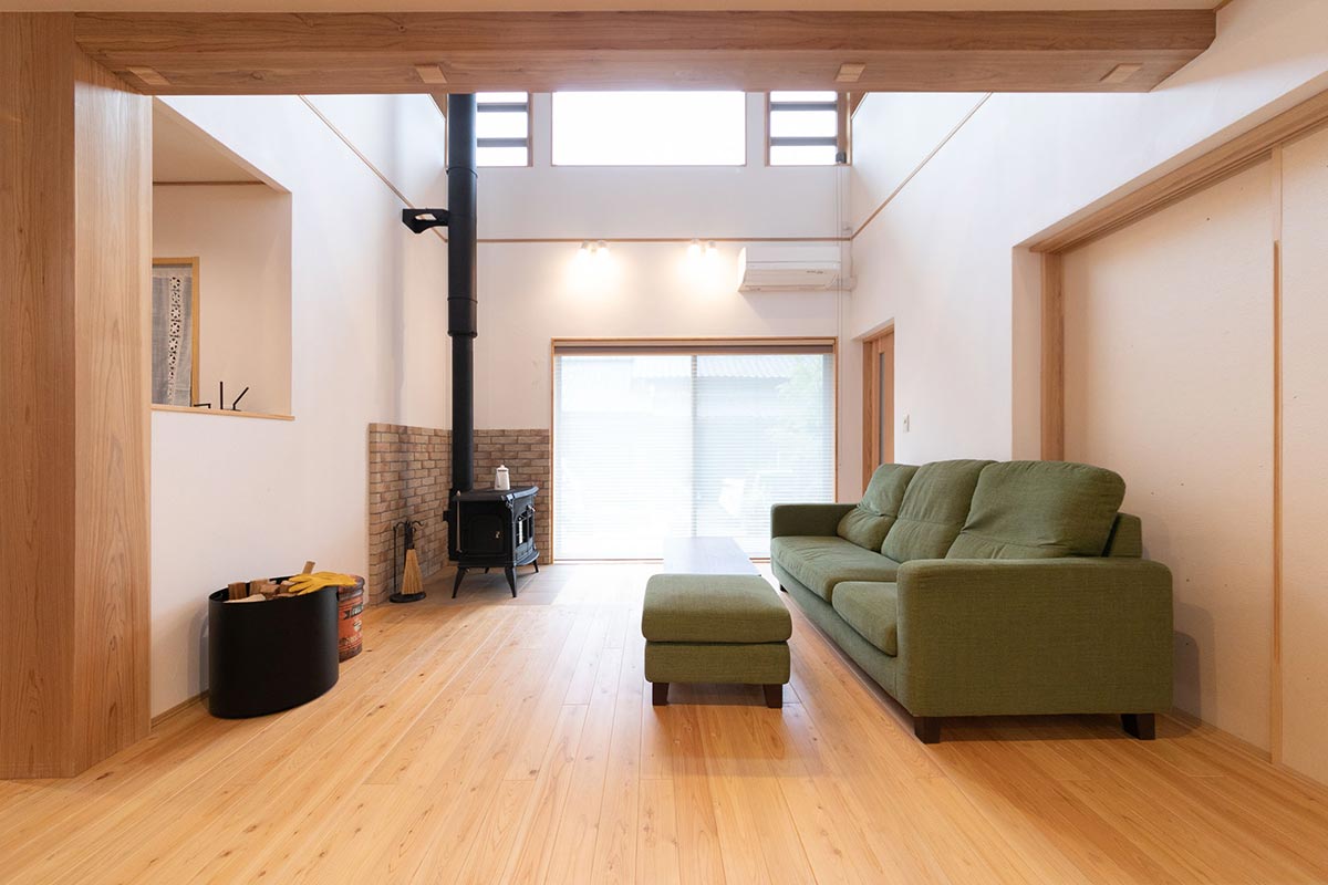 詳細を見る大きな吹き抜けのあるリビングで、薪ストーブと過ごす暮らし