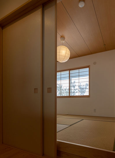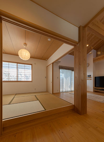 リビングに隣接する和室を“段上がり”にしたことにより、お部屋に立体感が加わりました。