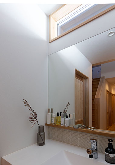 また、吹き抜けに窓を設けることで、より明るい室内を実現。